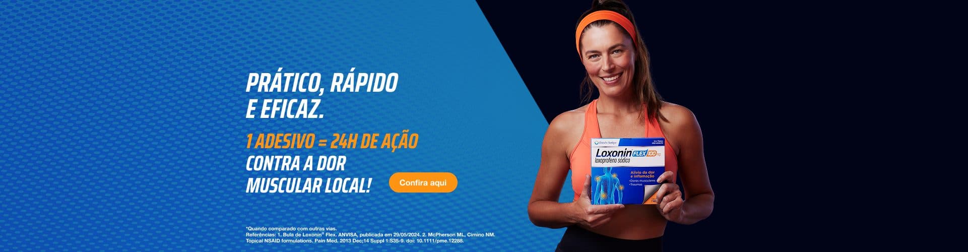 Com um só adesivo, Loxonin® Flex age na inflamação local e na dor muscular, por 24 horas!1-4*